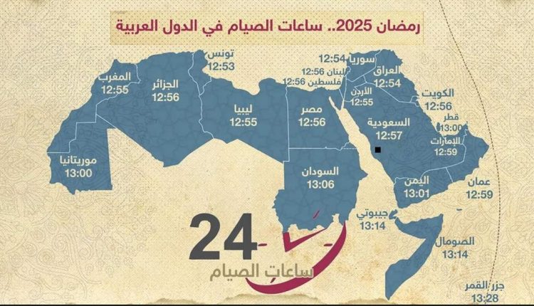 وفيما يلي مدة الصيام في الدول العربية لعام 2025، وفق التوقعات الفلكية ، من الأقل صياماً إلى الأكثر، وهي كالآتي: