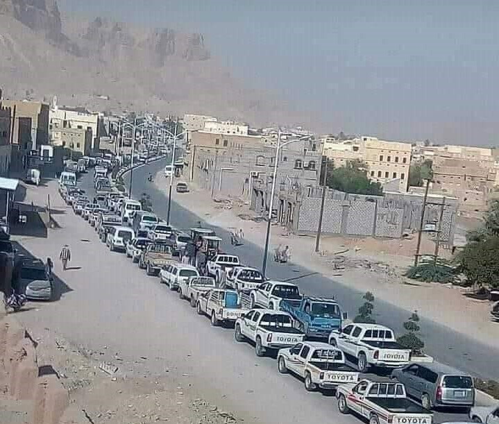 ولفتت المصادر إلى أن سيارات المواطنين في مديريات حضرموت الوادي تقف بطوابير طويلة للحصول على البنزين من محطات بيع الوقود الرسمية التي تفتح بشكل متقطع.