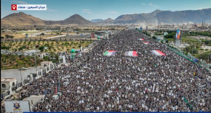 سيول بشرية في مناطق “حكومة صنعاء” لتأكيد الثبات مع غزة ومواجهة العدوان الأمريكي