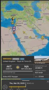 وبيَّن الموقع أنّ ناقلة وقود جوية تابعة لسلاح الجو البريطاني (RAF Voyager) نفّذت رحلتين من قاعدة “أكروتيري” الجوية في قبرص إلى شمال البحر الأحمر لدعم حاملة الطائرات الأمريكية “هاري أس ترومان”.