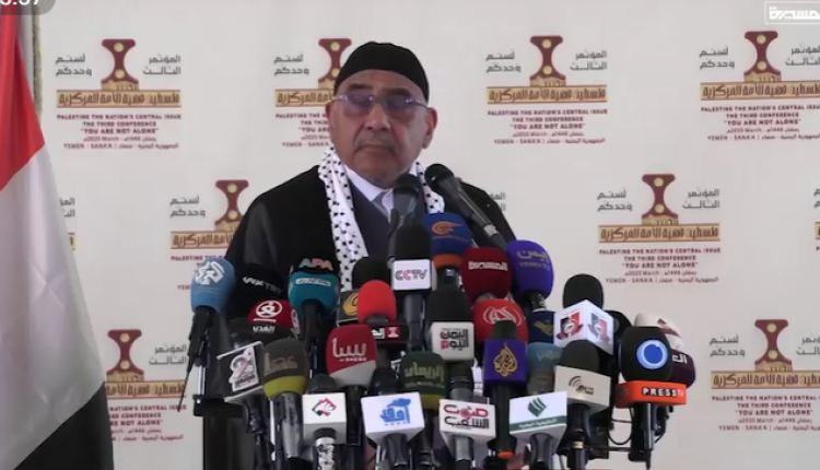 وكان عبد المهدي يتحدث خلال مشاركته في المؤتمر الثالث لدعم فلسطين المقام في العاصمة اليمنية صنعاء بحضور عربي ودولي .