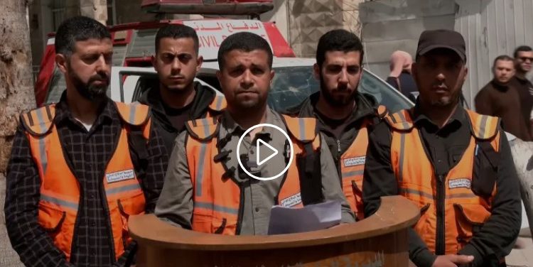 قال الدفاع المدني في غزة إن جيش الاحتلال ارتكب جريمة حرب باستهداف طواقمه وطواقم الهلال الأحمر الفلسطيني برفح جنوب قطاع غزة”.