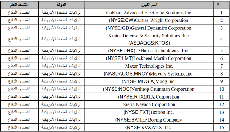 مركز تنسيق العمليات HOCC ينشر قائمة عقوبات الشركات الأمريكية المصنعة للأسلحة التي صنفتها حكومة صنعاء ’’داعمة للاحتلال الإسرائيلي’’
