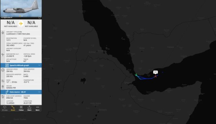 ومنذ مطلع أبريل رصد الموقع رحلات متكررة لسلاح الجو الإماراتي منها طائرة “لوكهيد سي-130إتش” الإماراتية المسجلة برقم “1211” إلى جزيرة ميون في مضيق باب المندب ومطار المخا.