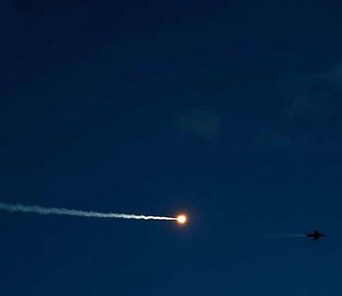 وتداول ناشطون على مواقع التواصل الاجتماعي مقاطع فيديو لبالونات حرارية اطلقتها طائرات أمريكية في محاولة للهروب من صاروخ يمني مضاد للطائرات.. وتوثق الصور لحظة اقتراب الصاروخ اليمني من الطائرة ..