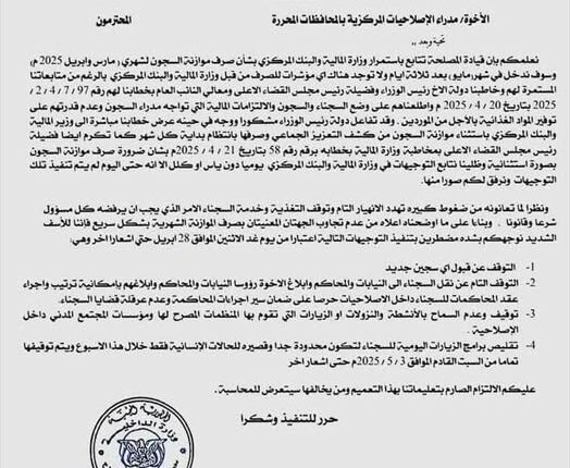 وتصاعدت حدة الإجراءات بإعلان المصلحة وقف الزيارات اليومية للسجناء بشكل كامل اعتباراً من السبت 03 مايو المقبل وحتى إشعار آخر، مما يعكس حجم الاختلال الخطير الذي بات يهدد مؤسسة السجون، ويضع كلاً من حقوق النزلاء وسير العدالة أمام تحديات كبيرة.