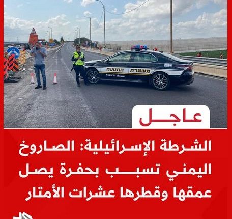 وأفادت شرطة الاحتلال الإسرائيلي في بيان لها بأن الصاروخ اليمني احدث حفرة كبيرة بعمق وعرض عشرات الأمتار ..