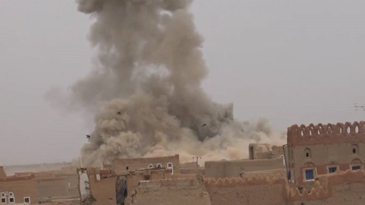 الطيران الأمريكي يشن ’’7’’ غارات على مديرية الحزم بمحافظة الجوف (تفاصيل)