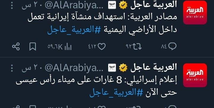 قناة العربية نشرت على حسابها (العربية عاجل) بمنصة إكس، خبرين عاجلين، بعد إعلان إسرائيل اعتزامها استهداف موانئ الحديدة الثلاثة وأن على السكان إخلاء محيطها خلال نصف ساعة، الخبر الأول زعمت القناة نقلاً عن مصادرها أنه قد تم “استهداف منشآت إيرانية تعمل داخل الأراضي اليمنية”، فيما الخبر العاجل الآخر فجاء نقلاً عن الإعلام الإسرائيلي حسب مزاعم قناة العربية والذي زعم فيه أن 8 غارات على ميناء رأس عيسى حتى الآن”، فيما الحقيقة على أرض الواقع أن الاحتلال الإسرائيلي لم يقم بشن أي غارة على موانئ الحديدة حتى لحظة كتابة هذا الخبر.