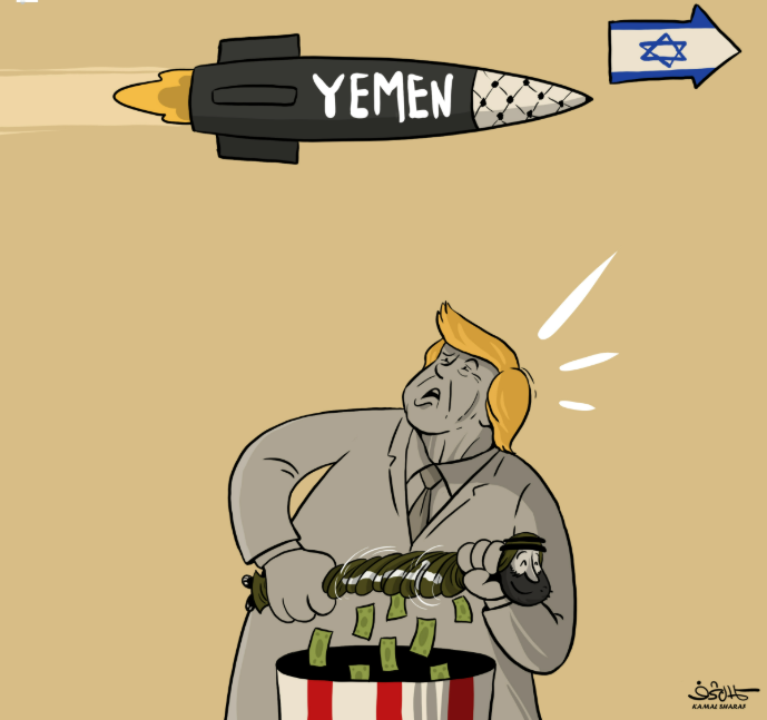 يبقى اليمن في قلب هذه المعادلة كلاعب غير تقليدي، يكسر التوقعات ويفرض معادلات جديدة في الصراع الإقليمي. في وقت يعاني فيه العديد من دول المنطقة من ضغوط داخلية وخارجية، يسعى اليمن إلى إعادة تشكيل موازين القوة، متحدياً الواقع السياسي المفروض. هذا الرسم الكاريكاتيري لا يعكس مجرد مشهد ساخر، بل يلخص عمق الصراعات الدائرة في المنطقة، حيث تتقاطع المصالح وتتناقض الأدوار في مشهد سياسي معقد ومتشابك الولايات المتحدة من صنعته وهي المستفيدة الوحيدة منه.