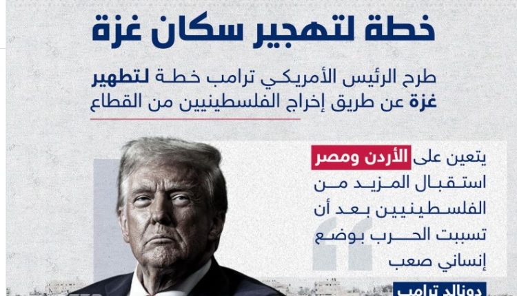 ومنذ يناير/ كانون الثاني الماضي، يروج ترامب لمخطط تهجير الفلسطينيين من قطاع غزة إلى دول مجاورة مثل مصر والأردن، وهو ما رفضه البلدان، وانضمت إليهما دول عربية أخرى ومنظمات إقليمية ودولية.