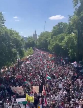 شهدت العاصمة البريطانية لندن، تظاهرة عارمة نددت بحرب الإبادة التي يمارسها جيش الاحتلال الإسرائيلي في قطاع غزة واصراره على الاستمرار فيها .