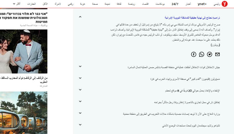 صرّح الرئيس الأمريكي دونالد ترامب لشبكة سي بي إس بأنه “لا يتوقع من إسرائيل أن تخفف من حدة قتالها في إيران”.