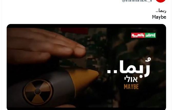 ونشر حساب “إيران بالعربية” على ( إكس ) مقطع فيديو لقنبلة نووية بين يدي شخص يرتدي بزة عسكرية عليها العلم الإيراني .