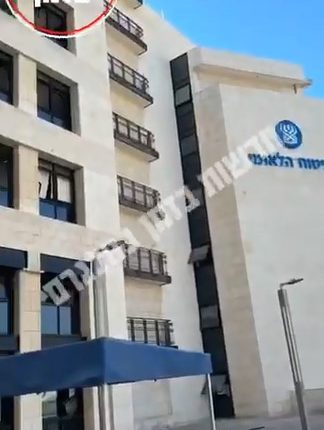 وتظهر الصورة شعار הביטוח הלאומי (“التأمين الوطني”) وهو هيئة الضمان الاجتماعي في إسرائيل بينما المبنى هو فرع للموساد.