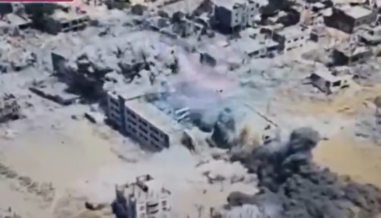 أظهرت مشاهد نسف جيش الاحتلال لحي سكني بأكمله شهد عملية نفذتها كتائب القسام قتل فيها 7 جنود إسرائيليين على الفور.
