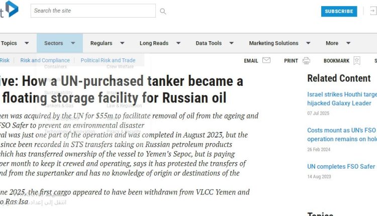 مجلة لويدز لست: كيف تحولت ناقلة نفط اشترتها الأمم المتحدة إلى منشأة حوثية عائمة لتخزين النفط الروسي