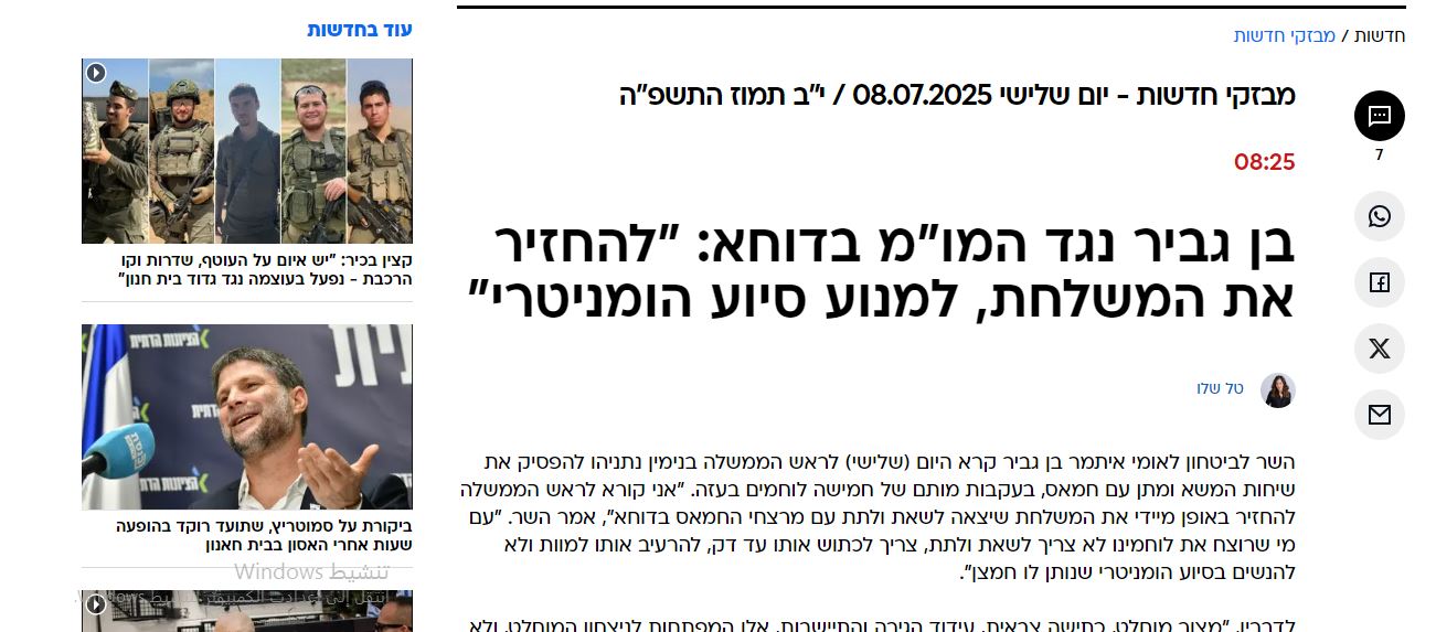 بن غفير ضد المفاوضات في الدوحة: “أعيدوا الوفد، امنعوا المساعدات الإنسانية”