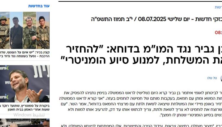 بن غفير ضد المفاوضات في الدوحة: “أعيدوا الوفد، امنعوا المساعدات الإنسانية”