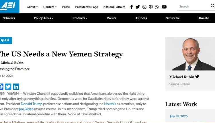 AEI: الولايات المتحدة بحاجة إلى استراتيجية جديدة في اليمن.. هذه تفاصيلُها
