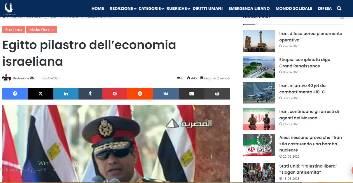 Il Faro sul Mondo الإيطالية: مصر تدعمُ اقتصادَ “إسرائيل” رغمَ مجازر غزة وتمنعُ مواقفَ دينية مناهضة