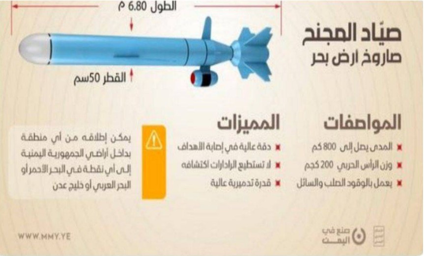في تقرير نشره موقعُ “دزين رو” الروسي، تساءل الخُبراءُ عن كيفية تمكُّنِ قوات صنعاء من تطوير صاروخ بحري مضاد للسفن بتقنيات متقدمة، والتي لا تمتلكها حتى إيران. الصاروخ، الذي أطلق عليه اسم “صياد”، يعتبر الأكثر تطورًا في ترسانة اليمن العسكرية، ويشبه إلى حَــدّ كبير النسخة الروسية من صاروخ “كاليبر” المضاد للسفن.