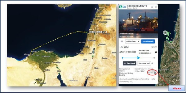 من جهة أخرى، تتجه 8 سفن حالياً من مينائي حيفا وأسدود إلى الموانئ المصرية في الإسكندرية وبورسعيد ودمياط وأبو قير.