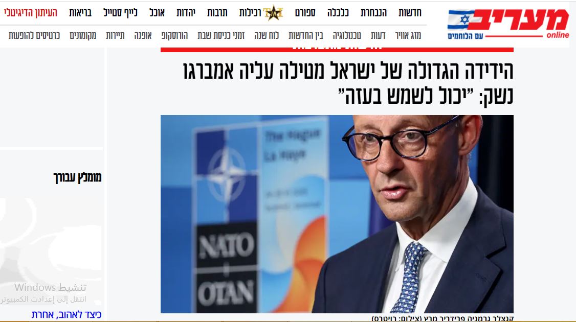 نقلت وكالة رويترز وصحيفة معاريف العبرية عن المستشار الألماني فريدريش ميرز إعلانه فرض تعليق مؤقت على تصدير المعدات العسكرية إلى (إسرائيل)، في خطوة فاجأت المراقبين نظرًا للعلاقات التاريخية الوثيقة بين برلين وتل أبيب.