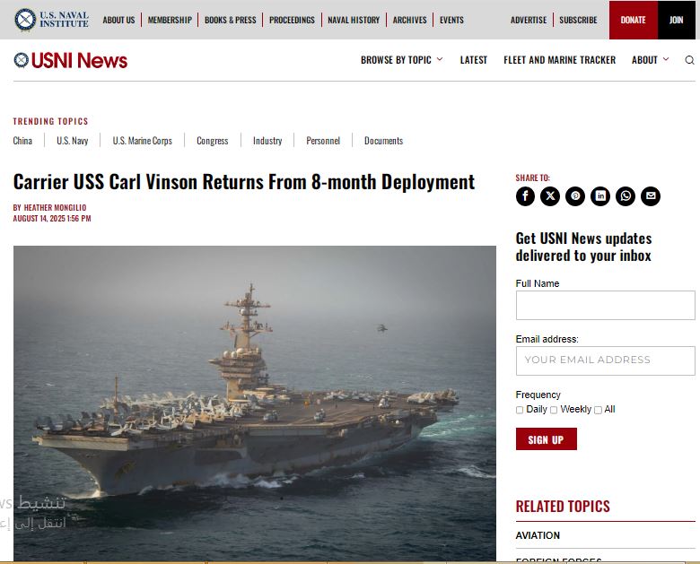 موقعُ “USNI News” التابع لمعهد البحرية الأمريكية
