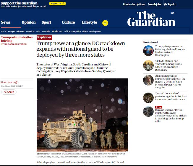 الغارديان: ترامب يمدّد سلطته بالقوة: الحرس الوطني في واشنطن ومدن ديمقراطية تستعد للمواجهة