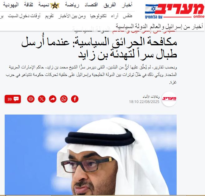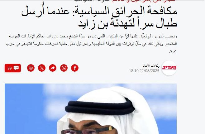 وبحسب التقرير، فقد التقى ديرمر، الذي يشغل منصب وزير الشؤون الاستراتيجية، عدداً من كبار المسؤولين الإماراتيين، من بينهم الرئيس الشيخ محمد بن زايد آل نهيان، في زيارة لم يُعلن عنها رسميًّا من أي من الطرفين، ما يعكس حساسية المباحثات في ظل الظرف السياسي القائم.