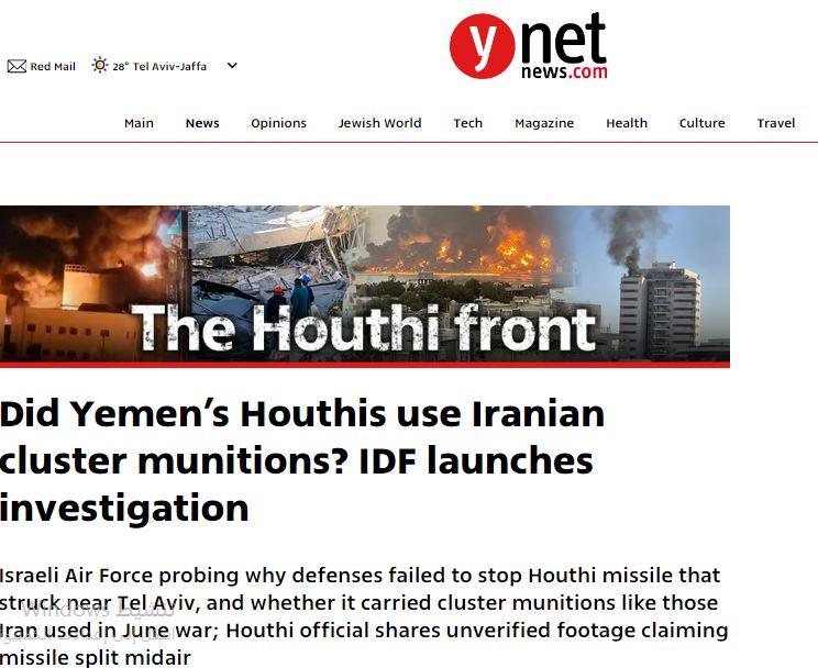 وأكّـدت وسائل إعلام عبرية، من بينها موقع صحيفة يديعوت أحرونوت، أن الصاروخ اليمني تجاوز كافة منظومات الدفاع، وقد أظهرت التحقيقات الأولية أن الصاروخ انقسم إلى عدة أجزاء أثناء اقترابه من الهدف، ما أثار شكوكًا حول احتوائه على ذخائر عنقودية متشظية، تُشبه في تأثيرها الصواريخ الإيرانية المستخدمة في حرب الأيّام الاثني عشر.