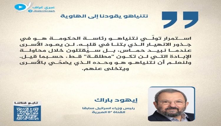 إيهود باراك: نتنياهو يطيل أمدَ الحرب لأسباب شخصية ويقودنا نحو الهاوية