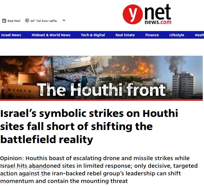 كشف موقع واي نت الإخباري الإسرائيلي أن مسؤولًا أمنيًّا في حكومة عدن التابعة للتحالف السعوديّ الإماراتي، قدّم نصيحةً مباشرةً لـ (إسرائيل) عقب الغارات الأخيرة التي استهدفت العاصمة اليمنية صنعاء، داعياً إلى تغيير نهج الاستهداف العسكري والتركيز على “القيادات” بدلًا عن المواقع المهجورة.