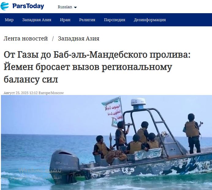 قالت وكالة بارس توداي الروسية إن اليمن بات لاعبًا حاسمًا في معادلة توازن القوى الإقليمي، بعد إعلان القوات المسلحة اليمنية بدء المرحلة الرابعة من الحصار البحري ضد (إسرائيل)، في خطوة وصفتها الوكالة بأنها “تحول ميداني واضح” في دعم اليمن للقضية الفلسطينية.