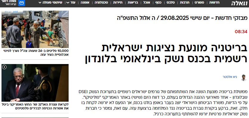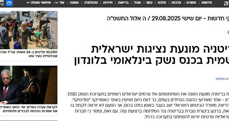 أفادت تقارير إعلامية دولية أن الحكومة البريطانية قرّرت منع الوفد الرسمي الإسرائيلي من المشاركة في معرض الدفاع والأمن والمعدات الدولي (DSEI) الذي سيُعقد في لندن هذا العام، والذي يعد أحد أكبر معارض الأسلحة في العالم.