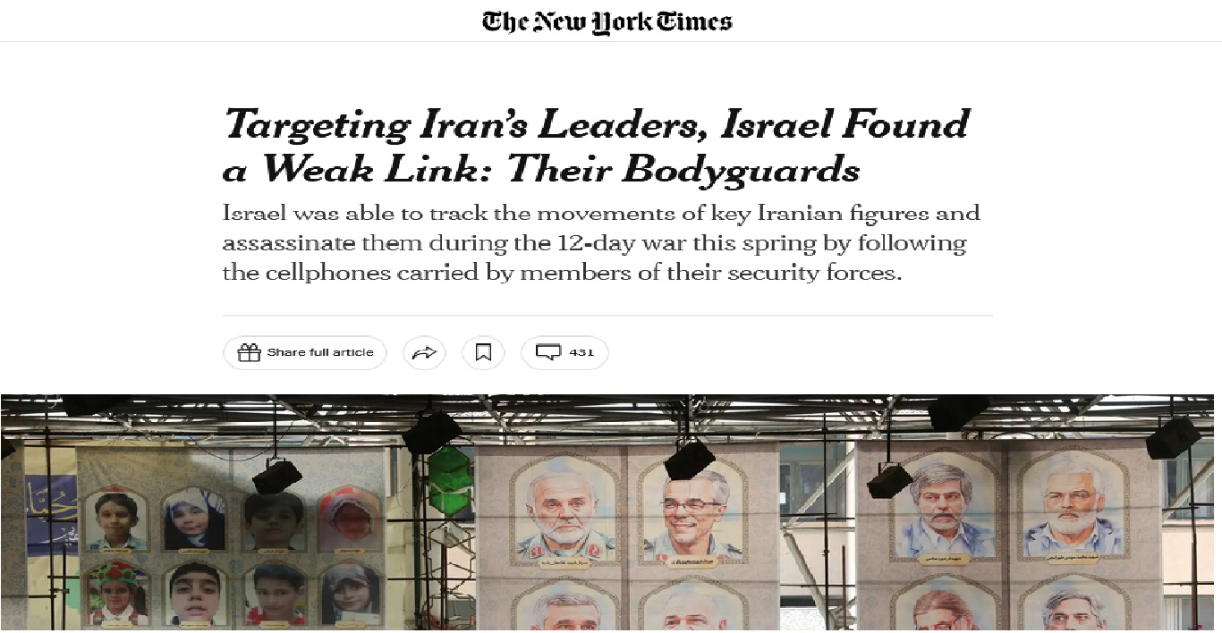 “نيويورك تايمز” تكشف: اختراق هواتف الحُرَّاس كان “كعب أخيل” إيران الذي مكّن (إسرائيل) من اغتيال قادتها وعلمائها