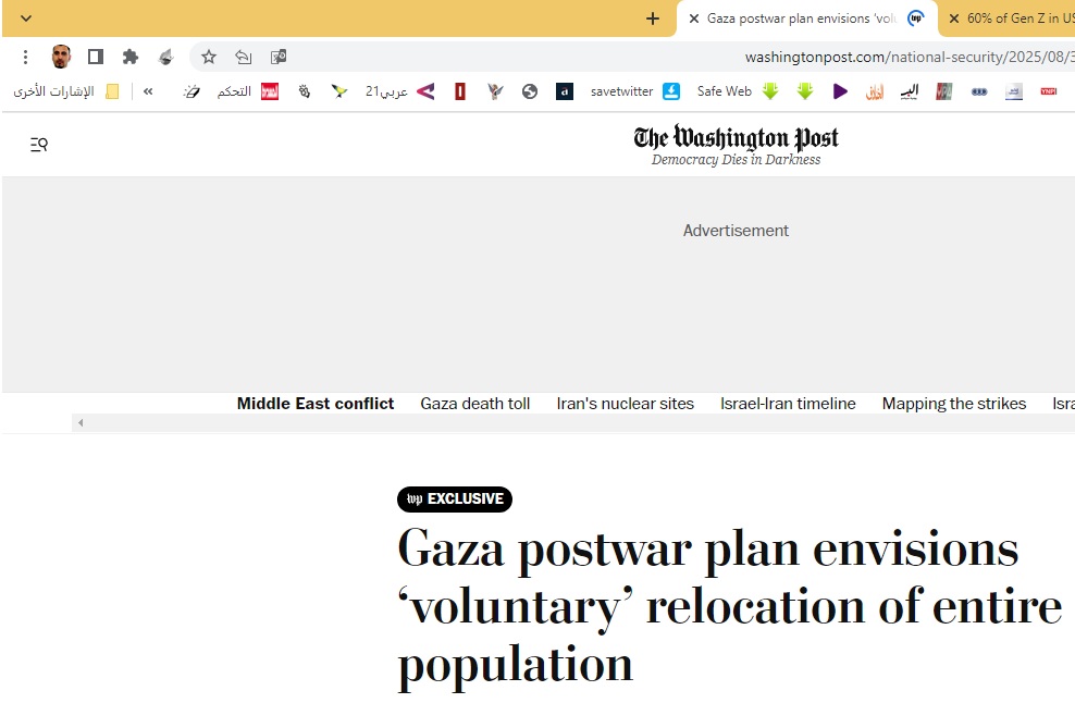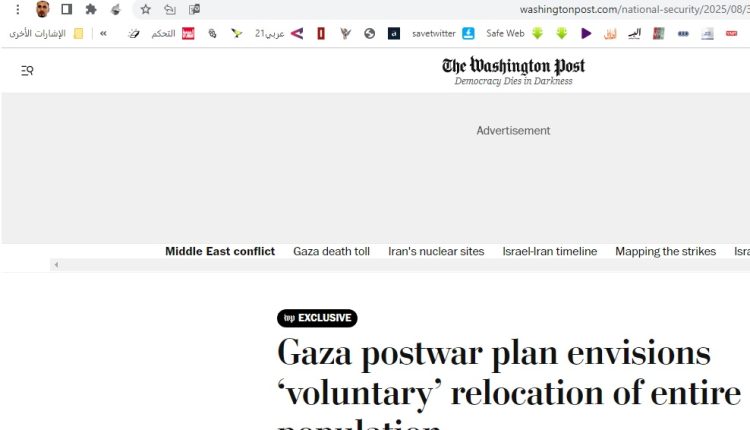 كشفت صحيفة واشنطن بوست عن خطة أمريكية سرّية تناقشها إدارة الرئيس السابق دونالد ترامب، تتمحور حول تهجير “طوعي” لسكان غزة، وفرض وصاية أمريكية على القطاع لمدة عشر سنوات، تحت ذريعة إعادة الإعمار وتحويل غزة إلى “ريفييرا الشرق الأوسط”.