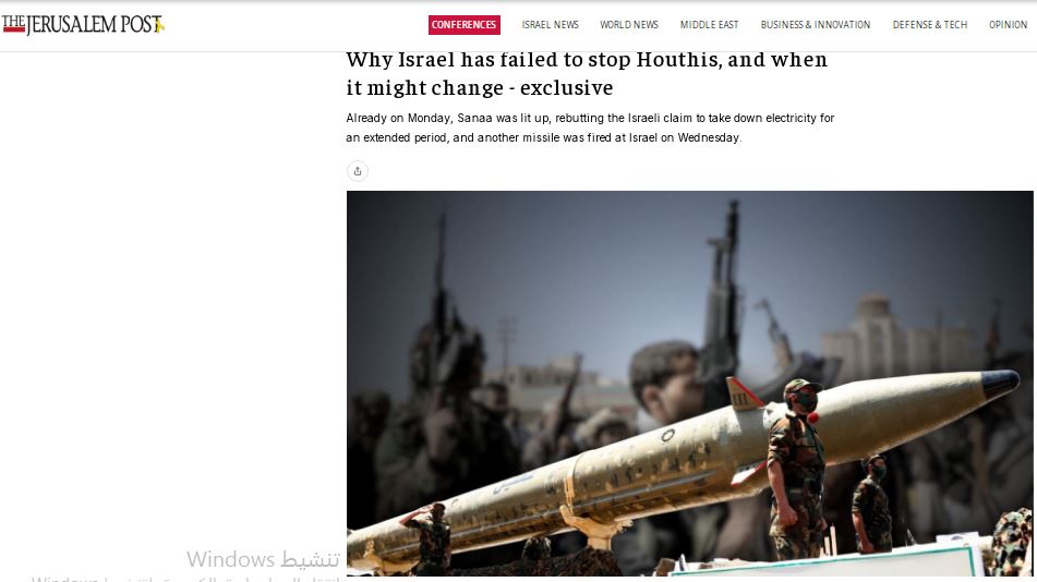 التصريحات، التي أدلي بها لصحيفة واشنطن بوست الأمريكية، تعكس قلقاً متزايداً داخل المؤسّسة الأمنية الإسرائيلية من قدرات الجماعة اليمنية، خَاصَّة بعد أن تمكّنت من إعادة تشغيل الكهرباء في صنعاء بسرعة عقب قصف إسرائيلي، وردّت بإطلاق صاروخ جديد باتّجاه الأراضي المحتلّة.