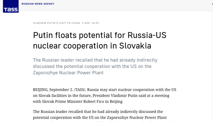 نقلت وكالة الأنباء الروسية “تاس” عن الرئيس الروسي فلاديمير بوتن إن روسيا قد تبدأ في المستقبل تعاوناً نووياً مع الولايات المتحدة بشأن المنشآت السلوفاكية.