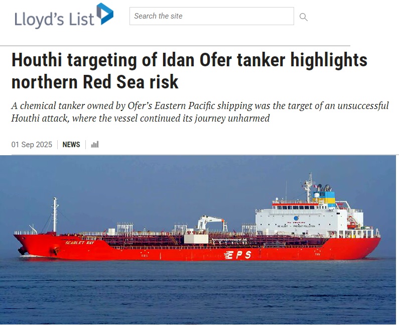 وصفَت مجلة “لويدز ليست” البريطانية المتخصِّصة في الشؤون البحرية، العملية العسكرية اليمنية التي استهدفت سفينة نفطية صهيونية قبالة السواحل السعوديّة بـ”الهجوم الأبعد”، مشيرة إلى أنها أبعد عملية بحرية تنفذها القوات المسلحة اليمنية شمالًا في البحر الأحمر حتى الآن.