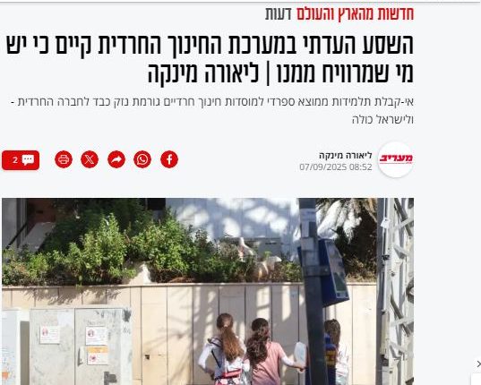 كشفت ليؤرا مينكا، الرئيسة السابقة لحركة “إيمونا” الدينية، عن استمرار التمييز العنصري ضد الطلاب اليهود من أصول شرقية (سفاراديم) في المؤسّسات التعليمية الحريدية، معتبرة أن هذه الممارسات تعكس سياسة ممنهجة للفصل الطائفي تهدّد تماسك المجتمع الإسرائيلي.