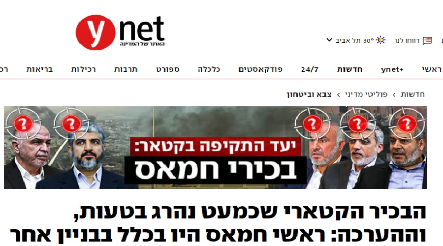 قالت صحيفة “يديعوت أحرونوت”، إن “مسؤولًا قطريًّا بارزًا كان على وشك حضور اجتماع مع قيادة حركة حماس في الدوحة، قبل أن يتم تأجيل اللقاء لساعة أَو ساعتين فقط قبيل الهجوم الإسرائيلي، وهو ما حال دون وجوده في موقع القصف”.