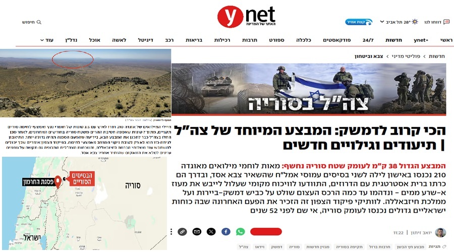 وفي تطوّرٍ أكثرَ خطورةً، أكّـدت الصحيفةُ أن العمليةَ التي استغرقت 14 ساعة تُعد الأعمق باتّجاه العاصمة السورية دمشق منذ حرب أُكتوبر 1973، وشهدت لأول مرة دخول وحدات مدفعية إسرائيلية إلى العمق السوري لتأمين القوات المتوغلة.