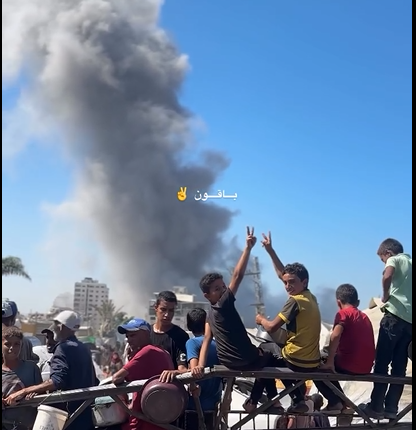 ورفع الأطفال بعفوية “شارة النصر” في وجه الغارة الصهيونية في إشارة إلى انهم لا يخافون العدو ولا غاراته.
