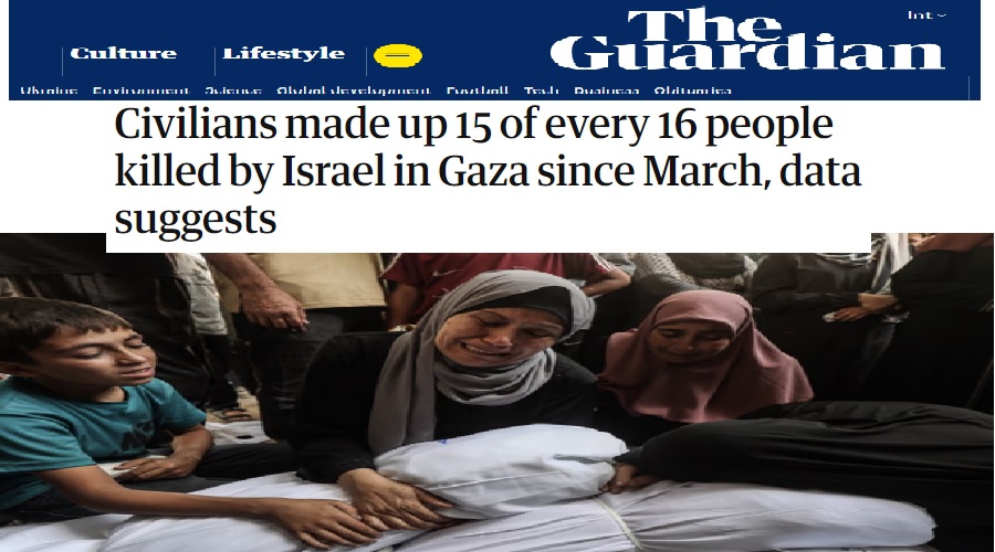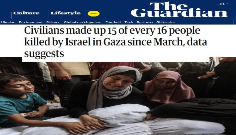 كشفت صحيفة الغارديان البريطانية، استنادًا إلى بيانات جديدة جمعتها منظمة “أكليد” المستقلة، أن 15 من كُـلّ 16 فلسطينيًا استشهدوا جراء الغارات الإسرائيلية على مدينة غزة منذ مارس/آذار الماضي، كانوا من المدنيين، ما يعكس ارتفاعا غير مسبوق في استهداف المدنيين منذ بداية الحرب.