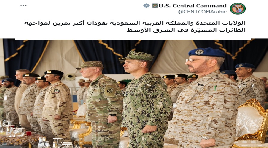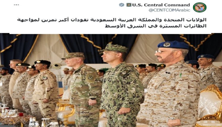 كشفت القيادة المركزية الأمريكية تفاصيلَ جديدةً حول التعاون العسكري الجاري بين الولايات المتحدة والسعوديّة، في إطار ما وصفته بـ”أكبر تمرين لمواجهة الطائرات المسيّرة في الشرق الأوسط”، مشيرة إلى أن هذا التنسيق يتضمن ربط أنظمة رادار ومستشعرات متقدمة لرصد التهديدات الجوية، وسط تصاعد الهجمات اليمنية المعلنة ضد (إسرائيل).