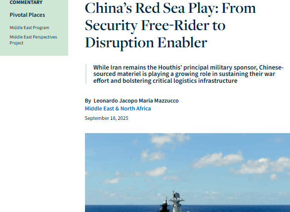 تتزايد المخاوف الأمريكية من أن الصين باتت تتحول تدريجياً إلى لاعب رئيسي في معادلة البحر الأحمر، وتسهم بصورة غير مباشرة في تعزيز قدرات الحوثيين في احد أهم الممرات البحرية العالمية ، وفقاً لمعهدٍ أمريكي متخصص في الأمن الدولي والسياسات الدفاعية.