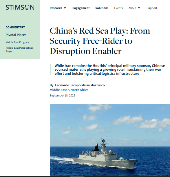 مركز “ستمسون”: مخاوف من تمدد صيني في البحر الأحمر يستفيد منه “الحوثيون”