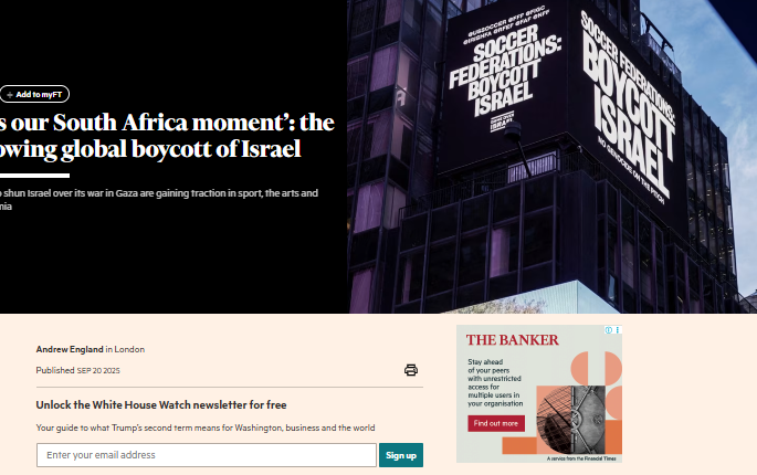 فايننشال تايمز: دعوات مقاطعة “إسرائيل” تكتسب زخمًا في أوساط الرياضة والفن والجامعات